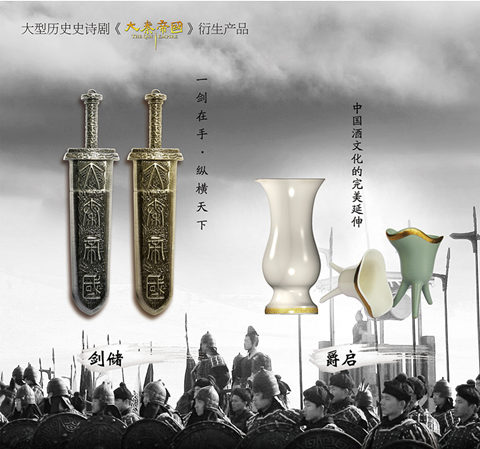 随着《大秦帝国》电视剧的热播,西安曲江大秦帝国影业投资影业公司以电视剧为切入点,将打造集影视剧、影视基地、文化衍生品、遗址公园、动漫游戏、演艺秀场等为一体的秦文化产业链,旨在实现从传承文化到传播文化、从运营文化到生产文化的产业链发展过程。“让历史文化能看得见,更能摸得着,这便是秦文化衍生品制作的初衷。”西安曲江大秦帝国影业投资有限公司负责人说。