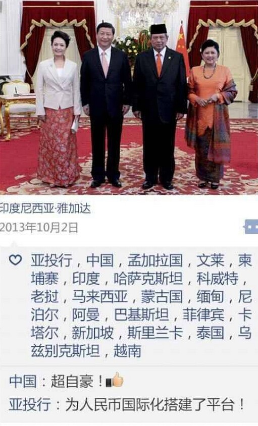 但是,亚投行不是这样的,中国在里面占的股份是50%,这下子好了,亚投行的事,事无大小,只要中国说不,那是一定通不过的,因为反对意见过半了嘛;有这个基础在,亚投行那三套班子的负责人可以随便送人情了,哪个国家的人来当都行了,反正拍板的权利在我们手里,哪个小国要想通过点什么决议,必须拉到中国的支持。