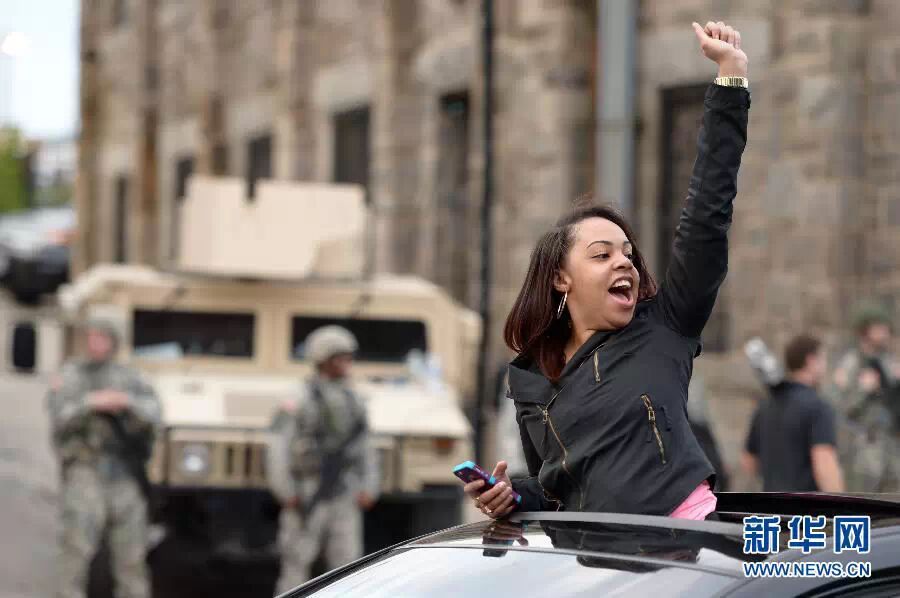 ▲5月1日,在美国巴尔的摩市,当地居民得知涉及非洲裔青年弗雷迪·格雷致死案的警察遭起诉的消息后上街庆祝。