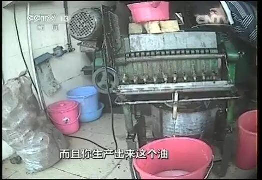 除了掺假现象严重,这些油作坊的卫生状况也令人担忧。正规的花生油生产企业对压榨机、过滤机等生产设备每次使用前后,都要清洗消毒,但是这些油作坊里的很多榨油设备,上面的油垢已经积累得很厚了。