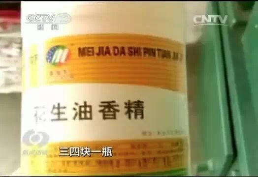 记者调查到,这些花生油作坊,往掺假的花生油里加香精是很普遍的做法,所以,那些卖榨油机的商家也搭配着卖花生油香精:“三四块一瓶,这个不能用多了。”
