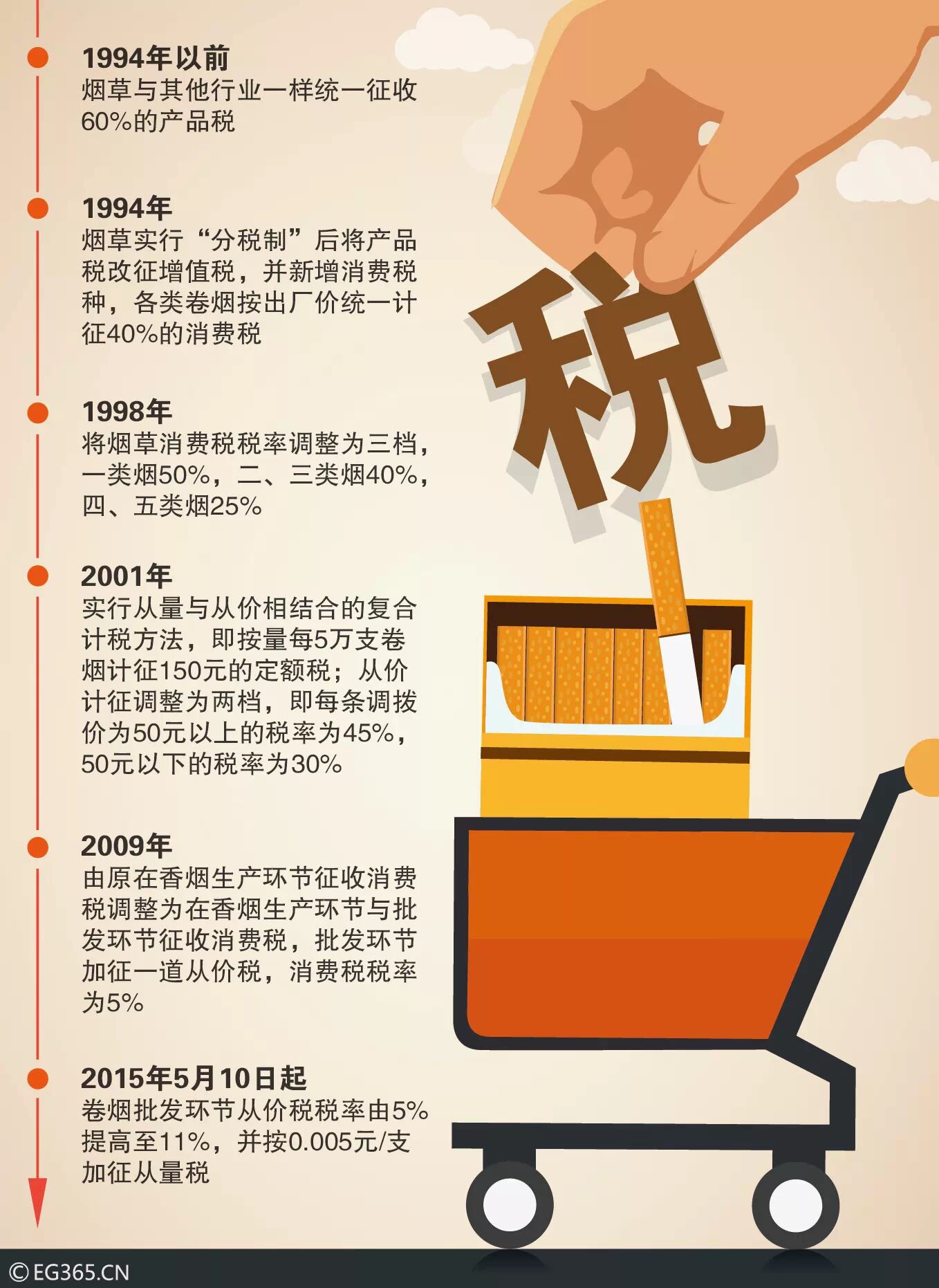 这是我国继2009年5月之后时隔六年再度调整烟草消费税。专家分析认为,这次税率的调整将为国家每年增加约300亿元财政收入。香烟是一种特殊的商品,各国都对烟草征以重税,目的就是为了限制该行业的发展,起到控烟的作用,同时也能增加收入。