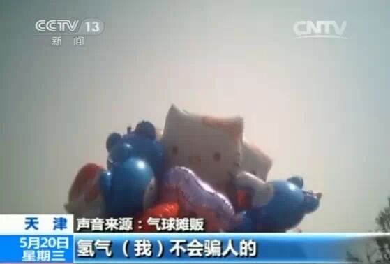 在学校、幼儿园附近及公园等场所,时常会有小商贩带着大捆气球进行售卖,孩子们都很喜欢这些花花绿绿的卡通气球,但是气球爆炸伤人的事件也屡有发生。孩子的家长是否知道购买的可升空气球内装的是什么气体?是否存在安全隐患?为此,央视记者进行了调查。
