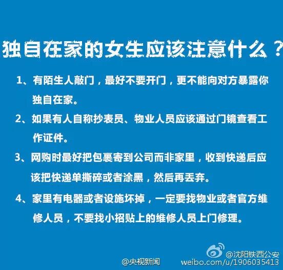 此外,不要在报箱信箱上留下女子姓名,可留爸爸或兄弟的名字。