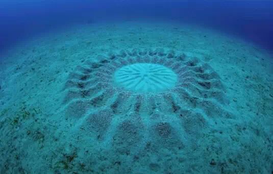 过去20年间,科学家对日本奄美大岛附近海底出现的复杂几何图形十分困惑。直到去年,科学家才明白,这些居然是河豚们的“艺术作品”。这种河豚中的雄性使用臀鳍在沙子上作业,建造了“城堡”一样的大型巢穴,目的是为了给雌性产卵“遮风挡雨”。
