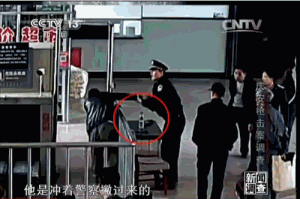 监控录像显示,李乐斌把枪放回枪袋之后,就向民警值班室跑去,此时,徐纯合绕过安检门向他追来,几乎就在李乐斌关上值班室门的同时,徐纯合也跑到了门口,并伸脚踹门。