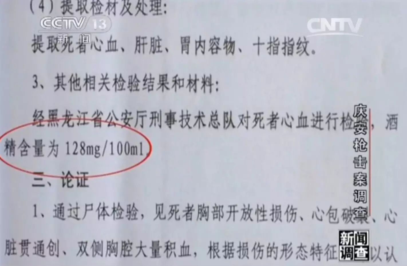 警方调查组出示的尸检报告显示:死者徐纯合血液中酒精含量为128mg/100ml。这一结果已超过80mg/100ml的醉酒标准。