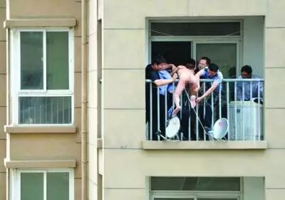 现场 裸男站阳台外欲轻生