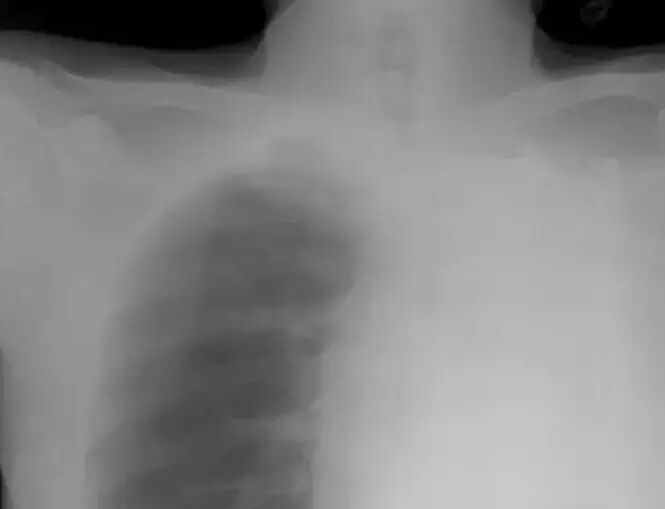 常人的胸片都有左右对称的两个肺,但小雷的片子只能看到右侧的一个肺,左肺的位置上一片空白。左肺怎么不见了呢?