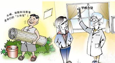 为什么凉席里会含有甲醛?金华市质量技术监督局一位工作人员介绍,现在很多竹席都会附加一个底层,把这两种产品固定在一起的过程中,绝对大多数都是用胶来黏接,这些胶有些就会含有甲醛。除此之外,凉席在进行染色和防蛀工艺时,也有可能使用一些含有甲醛的材料。如果一些非法厂家为了节约成本,用了一些劣质的原料,就会造成甲醛含量过高。