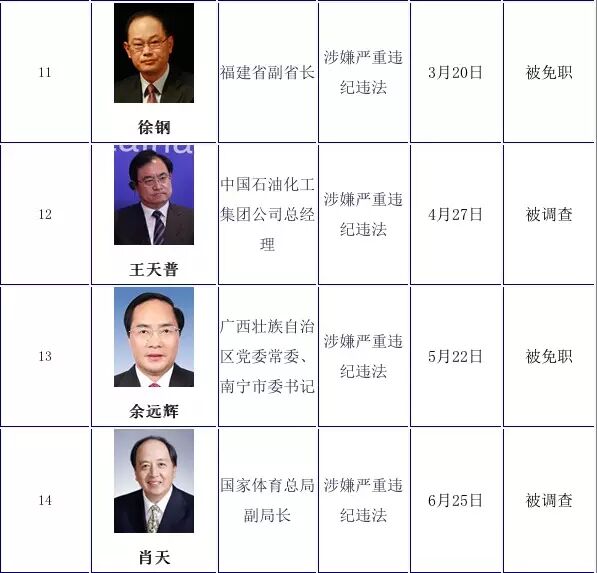 *****今天,国家体育总局副局长肖天涉嫌严重违纪违法,目前正接受组织调查。至此,肖天成为今年以来被查处的第14名省部级官员。看下图,告诉你这14名省部级官员。
