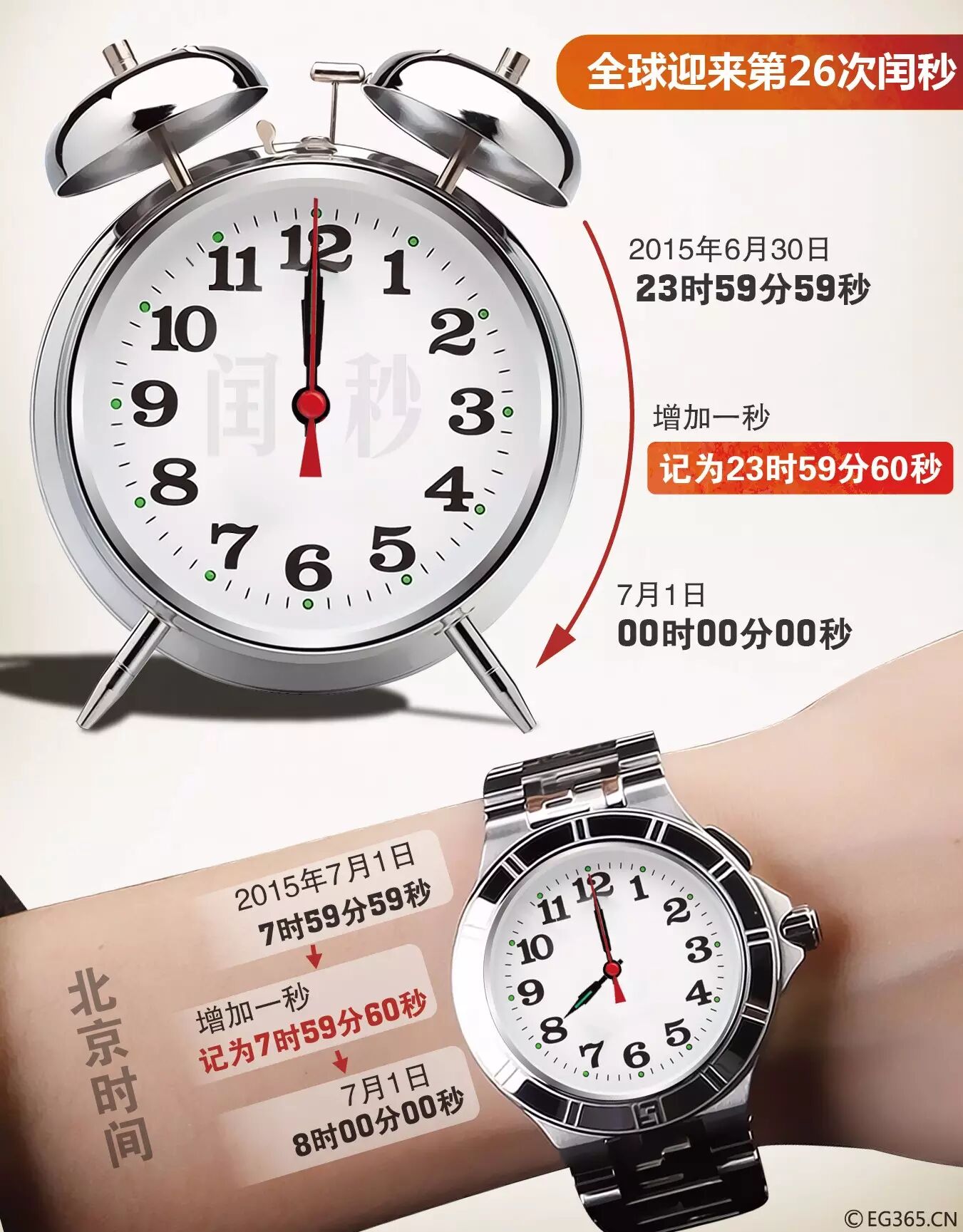 一年的时间到底有多“长”?2015年就是整整的365天么?天文专家表示,因为有了闰秒的存在,2015年总时长为“365天+1秒”,这多出的“1秒”就加在北京时间7月1日。