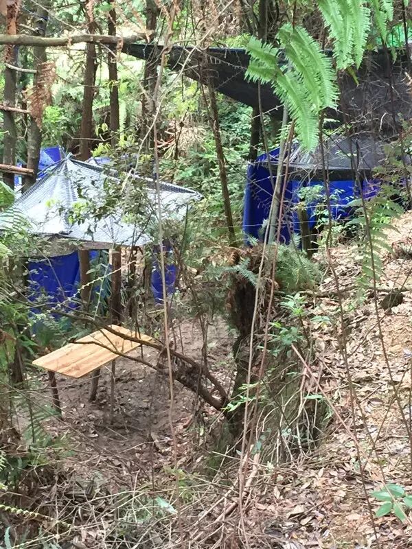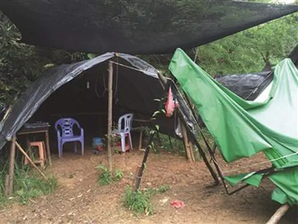 办案民警决定进山侦查。但刚走到山下就发现不时会有人上来盘问,有的道口还被人为安防了捕兽夹等障碍,这让民警觉得更加可疑。经过观察,他们利用早晨四五点钟山脚没有人时进山。在崎岖的山间小路穿行,民警不时发现一些被人踩出来的小径,民警继续深入,一直进入茂密的山间林地才在一处山坡上发现了一处掩隐在林间的蓝绿色帐篷,工棚里有电脑,无线发射器,电话等设备。而在不远处的山坡同样的工棚竟然多达十几个。