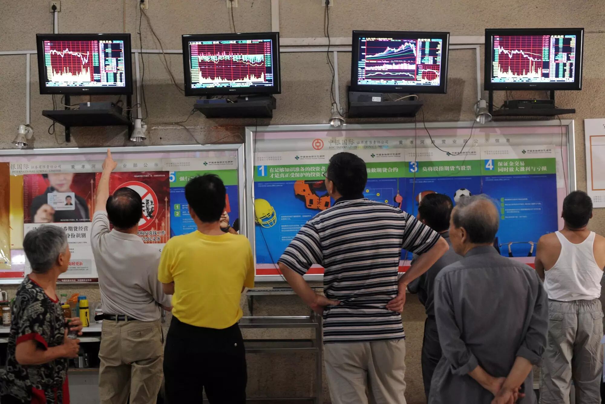 △2015年07月02日,湖北武汉,股民在某证劵交易所内关注大盘走势。(图来自CFP)