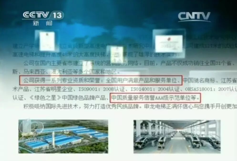 △出事电梯生产商“申龙”公司号称曾获众多荣誉