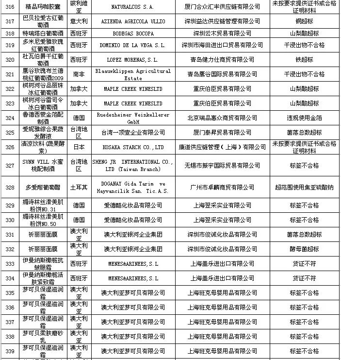 昨日(8月3日),国家质检总局公布2015年6月进口不合格食品、化妆品信息,365个不合格产品中包括328种食品,37种化妆品。