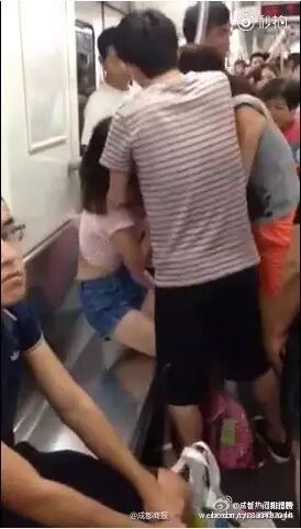 8月2日下午,武汉地铁二号线洪山广场站,一年轻女孩和一中年女子因争抢座位发生口角,女孩骂了后者,后者当即大打出手,几乎将女孩衣服撕扯掉……