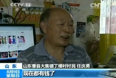 今年69岁的任庆勇原本在家种地,2009年,街坊领居开起了卖演出服饰的淘宝店,生意兴隆,任大爷也动了做电商的念头。任大爷眼花看不清键盘,就用记号笔在键盘上标出每个字母的位置,再用食指慢慢敲、慢慢练,就这样竟然凭着这种“一指禅”的打字技术,在网上开了两个演出服饰淘宝店,年收入超过十万。