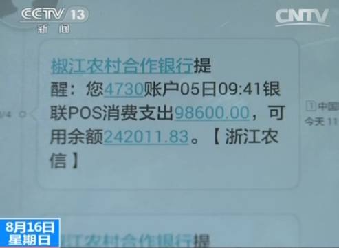 今年春节前,台州市民应先生银行卡内的29万元突然不翼而飞。应先生回忆说,“共收到五条消费短信,第一条49800元,第二条98000多元,后来三条也都是4万多。”银行发来的消费短信显示,应先生的银行卡在一家超市内,在不到五分钟的时间里分五次消费了总计29万多元。难道是有人在偷偷地使用这张银行卡?