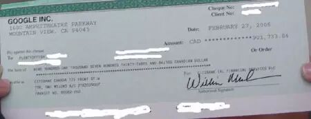 2006年6月,他贴出了一张谷歌广告给他寄来的90万元的支票,相对于每天赚3万块。这个时候,这个网站仍旧还是只有他一个人。而他的竞争对手,一般都至少有600台服务器,至少300名以上的员工。