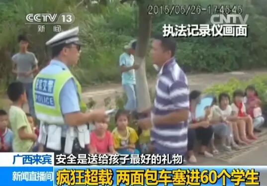 前不久在广西来宾,交警在路面执勤的时候拦下两辆核载9人的面包车,却发现,一辆载有25名小学学生,一辆载有35名幼儿园学生。
