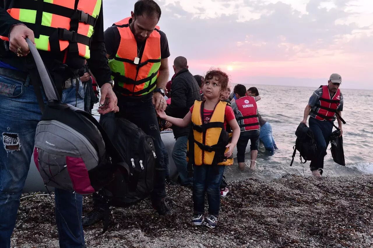 △2015年6月18日,希腊莱斯博斯岛,一批叙利亚移民登陆。