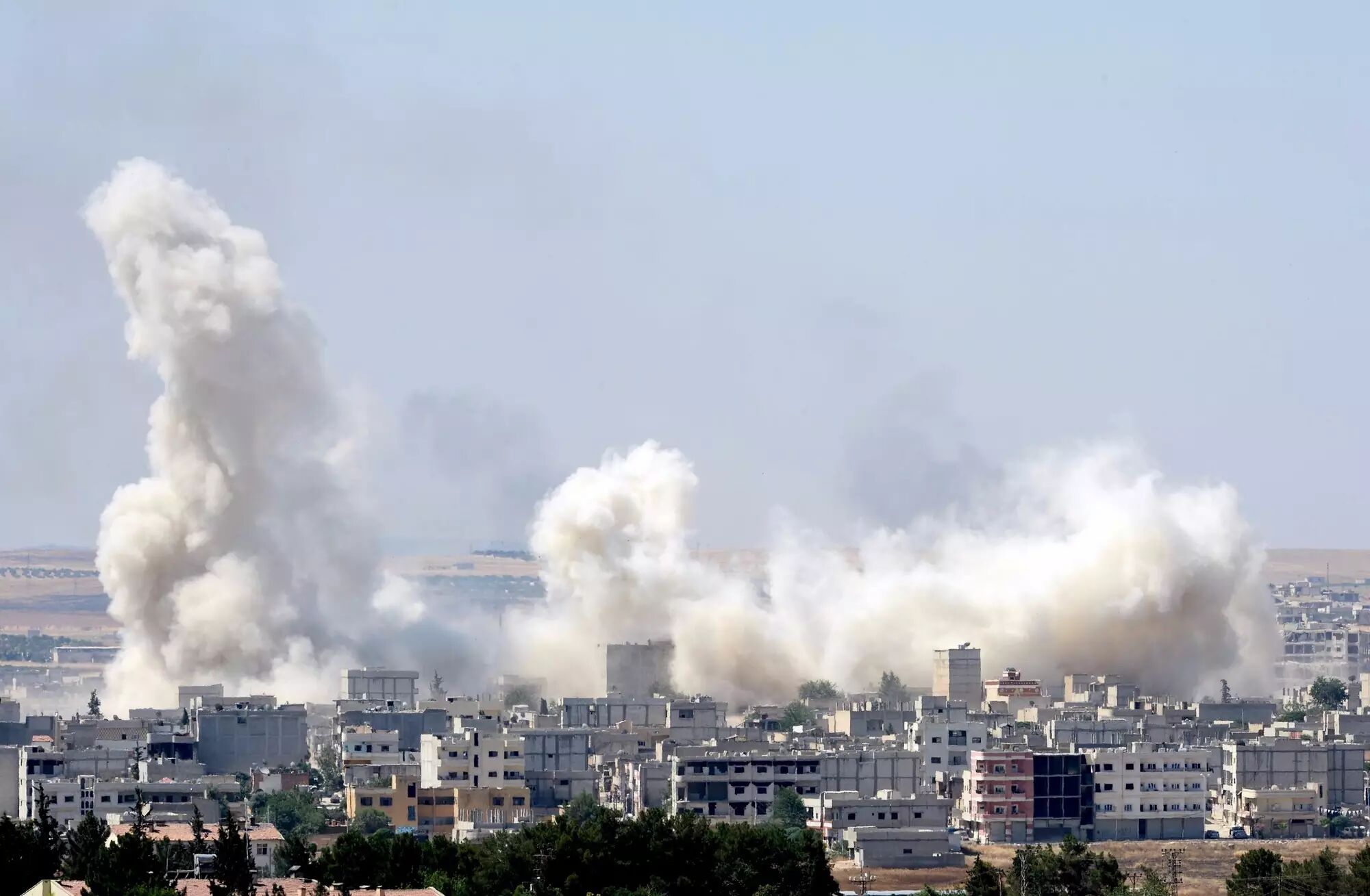 △2015年6月27日,叙利亚科巴尼硝烟四起。