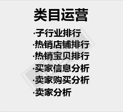 对我来说,数据化运营太重要了,也是在阿里做运营最能让我兴奋的地方,最能区分初级运营和高级运营的地方。运营要做的事儿太多,如果没有数据导向、没有KPI、没有取舍,东一榔头西一榔头,会非常没有成就感。阿里有多少供你利用的数据工具?我用过的有黄金策、活动直播间、数据魔方、月光宝盒、天猫流量视图、淘宝指数、量子恒道、卖家档案、活动效果分析、卖家分层、卖家云图……有的现在还存活着,有的已经无人运营。除此之外,BI(商业智能部)还可以为你的业务量身定做报表。现在的运营很幸福,很多数据产品进行了整合,简单很多,举例如下。