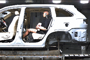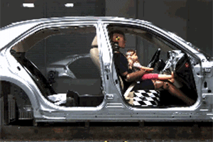试验结果显示,碰撞发生时,模拟成人的假人完全无法抱住怀中的模拟婴儿,婴儿瞬间就从成人手中向前飞出。