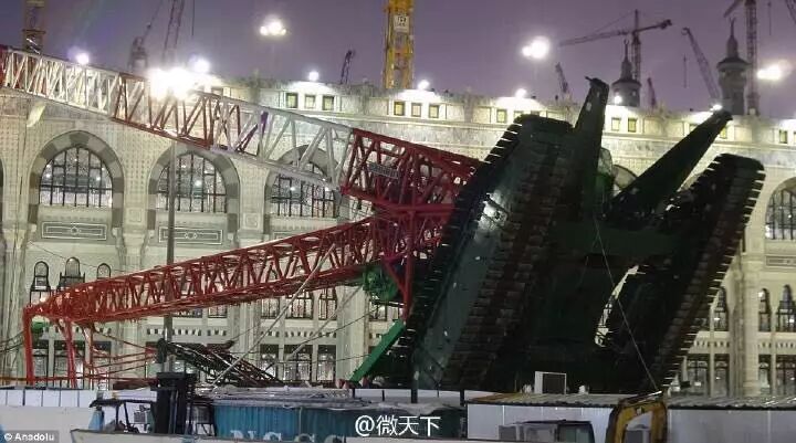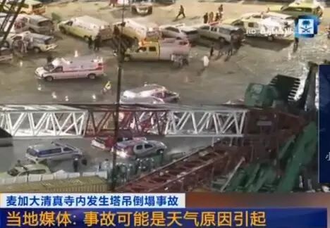 事故发生后,沙特消防部门派出15支消防队赶赴现场,当地医院和红新月会也随即展开救援。麦加大清真寺管理部门的初步调查结果显示,事故发生时大清真寺遭遇强风和大雨,导致塔吊倒塌。