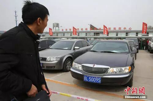 △中央公车拍卖会上的林肯牌外事用车