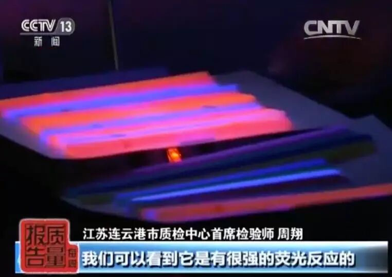 在进一步的检测中,检测人员还告诉记者,这些五颜六色的吸管除了存在禁用偶氮染料和重金属的质量风险外,还有近四成的产品被检出含有荧光物质,医学临床实验发现,荧光物质可使细胞产生变异,是潜在的致癌因素。