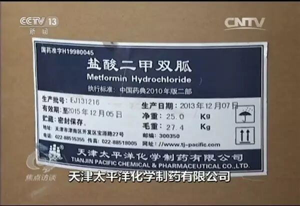 在制假原料的外包装上,警方看到,原料药为国药准字盐酸二甲双胍,标注的生产商是天津太平洋化学制药有限公司。据介绍,盐酸二甲双胍是制造降糖药品的一种重要原料药,天津太平洋制药公司是国内16家有生产资质的正规药厂之一。
