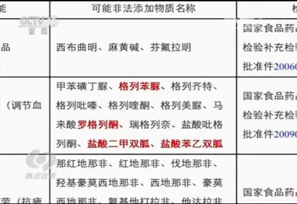 扬州市广陵区食药监局工作人员介绍:“第一感觉就是很震惊。这4种非法添加物质,如果长期不规则服用,会产生头疼、乏力、恶心等低血糖反应,重者可危及肝肾脏,严重可致人死亡。”