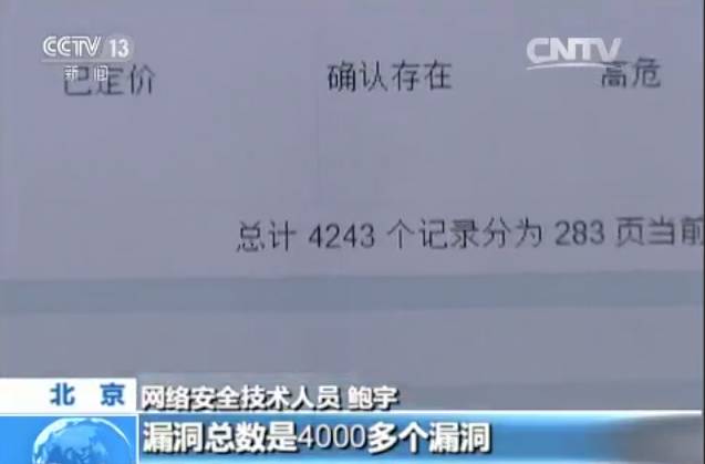 北京邮电大学计算机学院教授崔宝江表示,相关的一些漏洞如果被非法利用,可能造成系统里边的信息被非法的添加、篡改,造成整个信息系统里边的信息不真实,扰乱我们国家一些正常的信息处理和采集,以及系统里数据的安全。