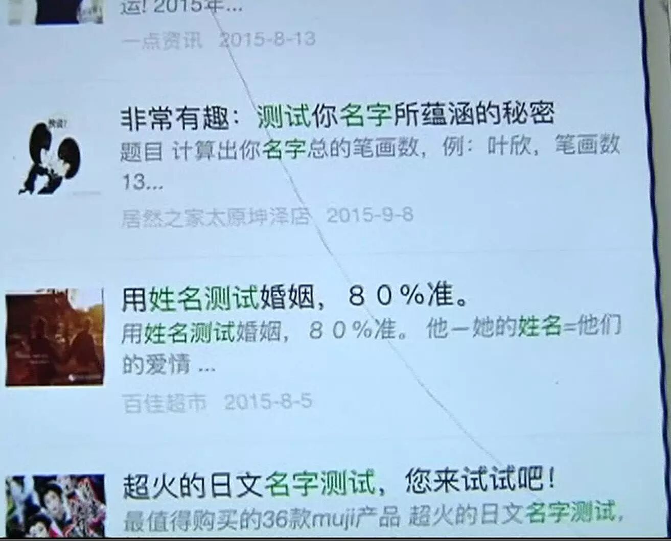 近日,微信朋友圈里一款算命小游戏很受欢迎,只需要输入姓名,然后点击确定后,几秒钟就能形成分析报告,告诉你能穿越变成哪位古代名人。其实,在朋友圈里类似算命的游戏还真不少,大部分都是输入姓名、生日或者手机号来测试。由于这些网络占卜测试的相关链接多数是朋友圈里分享,所以比起桌面弹出的陌生窗口更容易获得信任。