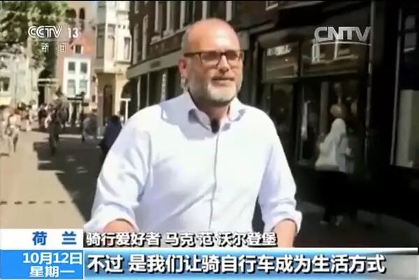 骑行爱好者马克·范·沃尔登堡说,骑自行车方便、舒适、安全,人们自然而然地喜欢骑车,骑车成为一种生活方式。“骑自行车有利于城市发展,也有利于身体健康,连88岁的老奶奶都不用担心能不能跳上自行车的问题”。