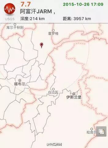 据中国地震台网测定,今天17点09分,在阿富汗兴都库什地区(北纬36.5度,东经70.8度)发生7.8级地震,震源深度超过200公里。另据美国地质勘探局发布消息称,阿富汗北部发生里氏7.7级地震。巴基斯坦首都伊斯兰堡以及印度首都新德里震感强烈。
