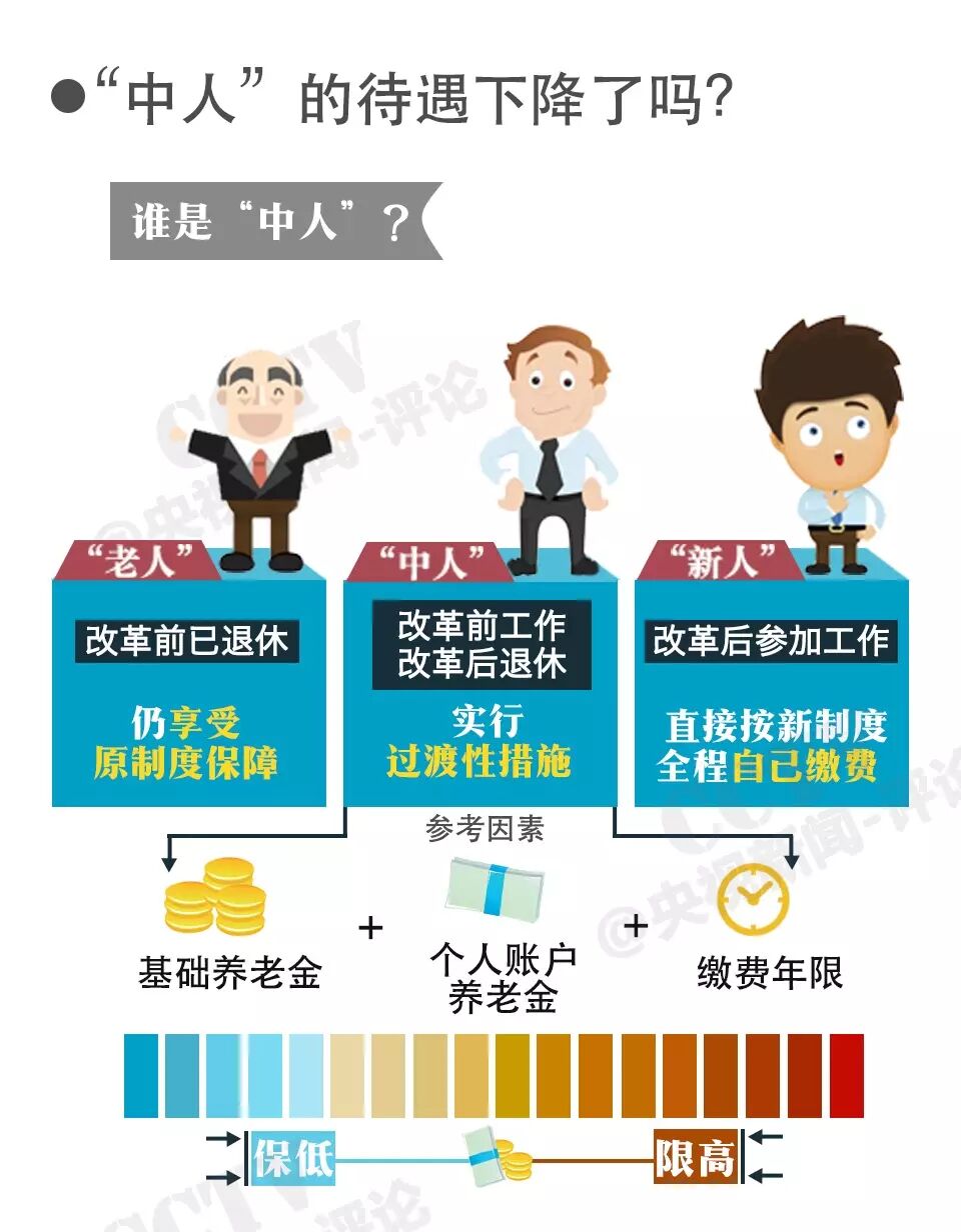 事实上,《关于机关事业单位工作人员养老保险制度改革的决定》明确,对“中人”通过实行过渡性措施,保持待遇水平不降低。即:在发给基础养老金和个人账户养老金的基础上,再依据视同缴费年限长短发给过渡性养老金。