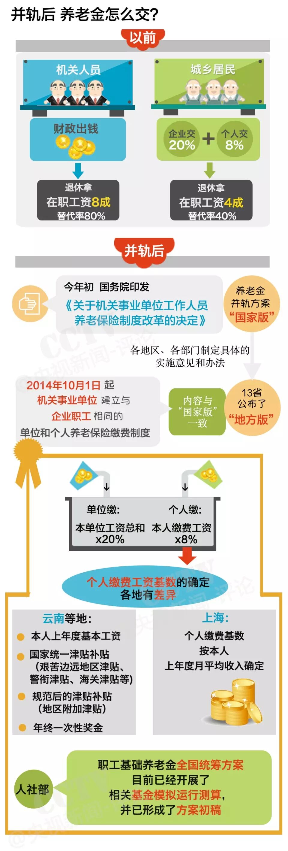 养老金并轨后,机关事业单位人员的养老金将不再由财政完全承担,他们将与企业职工一样,个人缴纳部分养老保险。