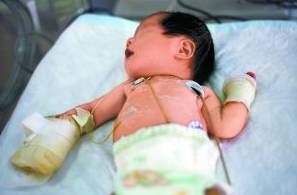 河北易县刚刚出生满十天的贝贝因为戴手套导致手部肌肉坏死,当孩子被送到医院的时候,孩子整个右手都变成了紫黑色,凉凉的没有温度。可怜的小家伙遭遇了什么?