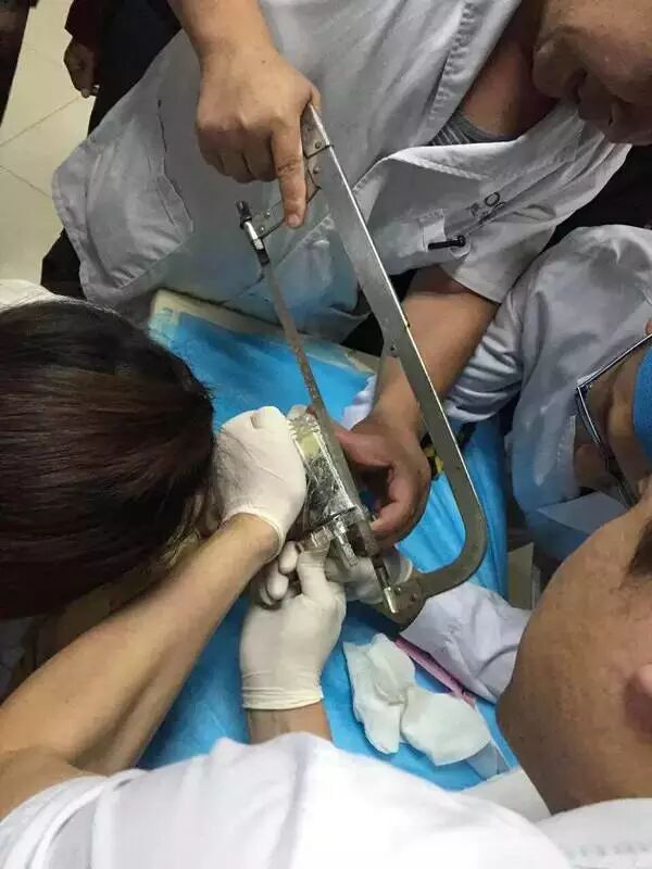 三岁的徐州孩子静静10月28日在厨房使用榨汁机导致左手被绞进了榨汁机,手和榨汁机连在一起被送到医院,为了将机器和孩子手分离,还惊动了消防救援人员,首先对榨汁机进行破拆然后医生对孩子手指进行急救,孩子三个手指骨折。