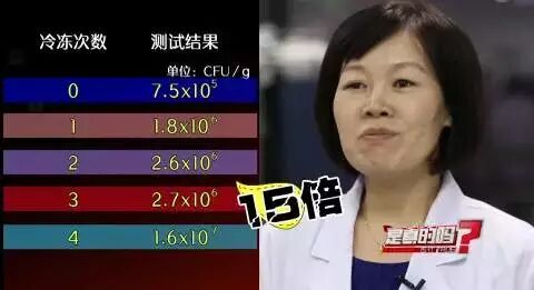 在检测人员的帮助下,将同一块鲜肉反复冷冻解冻了4次,并在每次解冻后进行采样,检测样品中的菌落总数。检测结果显示,反复冷冻4次后,菌落总数竟然是最初的15倍。