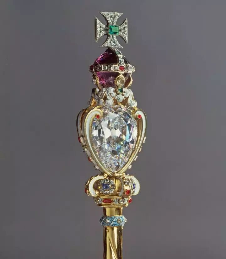 非洲之星,重530.2克拉,与最近发现的122克拉的蓝钻同样出产于南非库里南钻石矿,现在则被嵌在英王的权杖上。