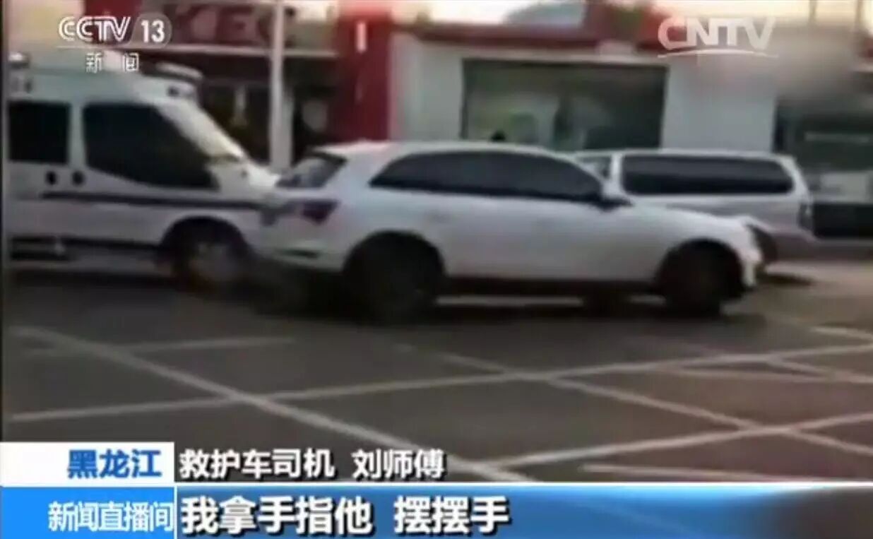 11月18日,哈尔滨街头一辆白色越野车挡在闪烁急救灯的救护车前,两分钟内,越野车跟随救护车后退再前进,连续将其逼停。救护车上人员探出身子交涉了半天,越野车才自行离去。现场究竟发生了什么?