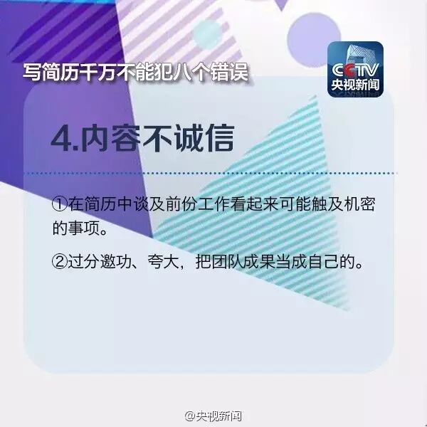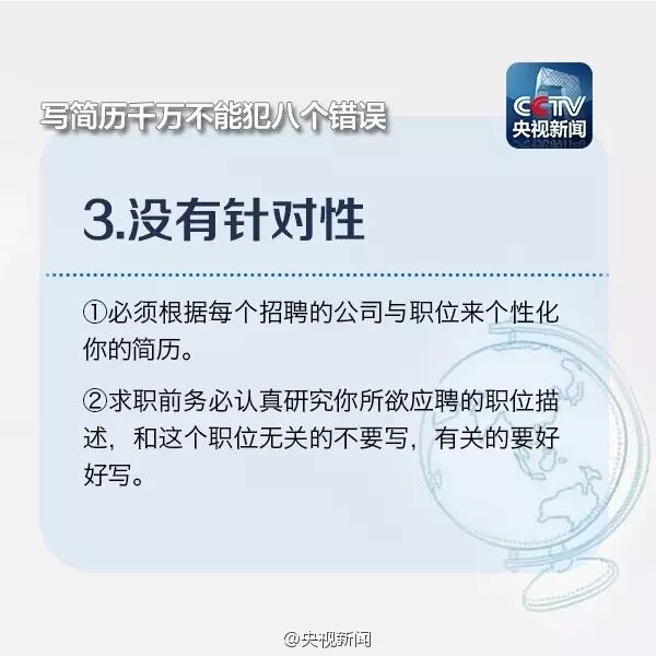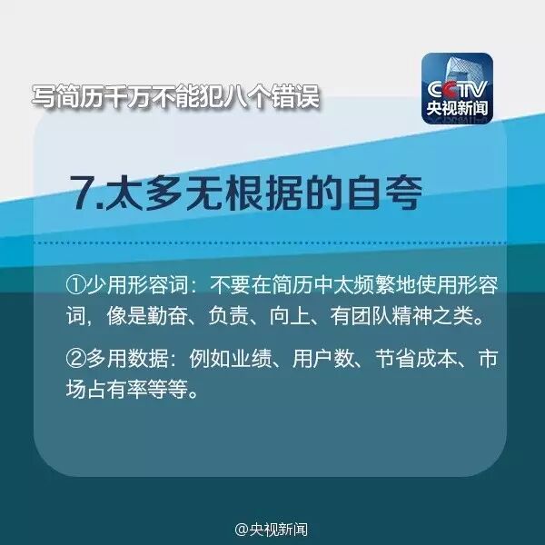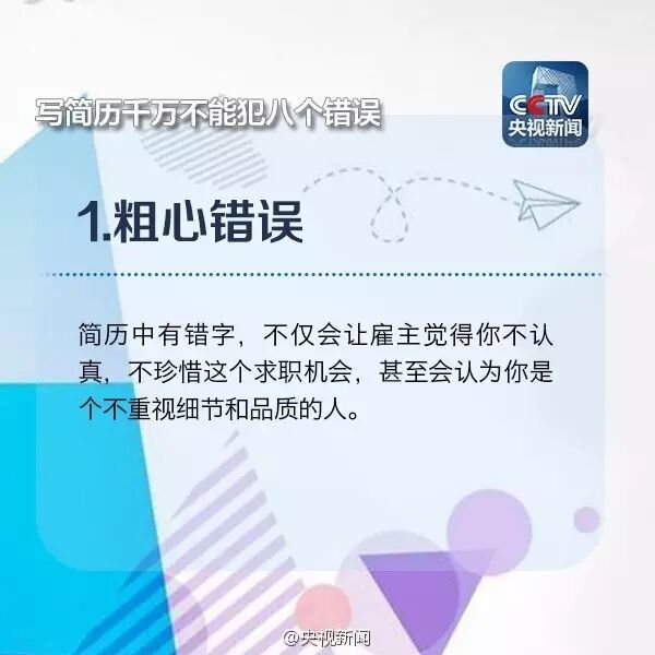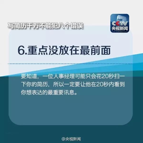 在浙江某招聘会上负责“会诊”的王老师表示,一个熟练的HR浏览简历的时间只有十几秒,只与你交谈几句。因此,减少简历上突出的明显问题,避免出现无用信息掩盖重要信息、排版倾斜45度、夸大自己能力等“奇葩”简历的情况。注意到下列常出现的8大错误,也许就能让你的简历脱颖而出!