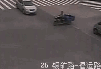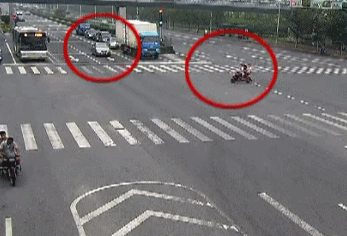 4、电动车驾驶人直接骑行在机动车道上闯红灯行驶,结果被一辆正常行驶的机动车撞飞。唉!