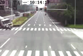 2、大槽罐车本意想赶在最后几秒抢黄灯,可遭遇了闯红灯的电动车,躲闪不及,槽罐车倒地。等几分钟的事儿,何苦!