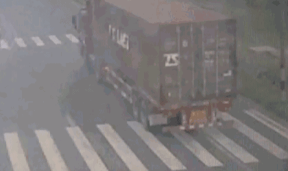1、 斑马线前,一辆大货车因为故障,打着双闪停在路边,而后面的蓝色皮卡突然驶来直接撞上了大货车。事后得知,后车驾驶员因为开车拨打手机导致没有注意到大货车,乃至引发悲剧。