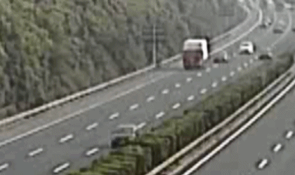 3、 图中,大货车在第三车道正常行驶,而后方的小轿车既没有减速也没有打方向盘,直接撞上了货车的左后方。而据后车驾驶员称:他当时只是看了一下手机,就撞上了前车车尾!